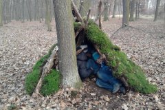 Želvy a šmoulové staví v lese domečky