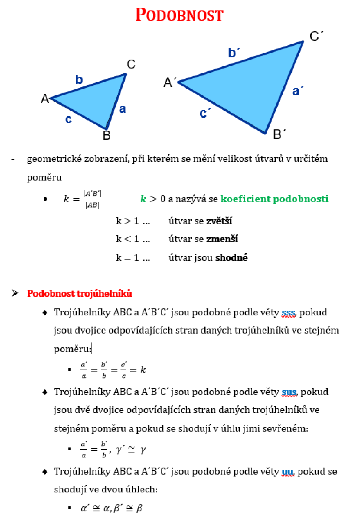 Co to je? Kdy jsou dva trojúhelníky podobné?