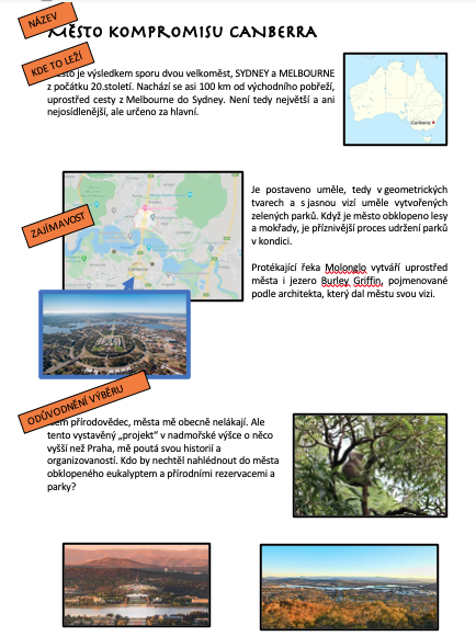 - formát: A4, nadpis, max 150 slov-spíše méně, stěžejně popis obrázků, text v celých větách vlastními slovy, ulož jako pdf nebo ruční práce jako obrázek