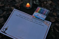 Výjimečným okamžikem byl také lampionový průvod, na který jsme s radostí pozvali i rodiče. Děti i dospělí si tuto společnou procházku opravdu užili. Jemné světlo lampionů nás provázelo ke třem zastavením – ke hřbitovu, kostelu a k Hornomlýnskému rybníku, kde jsme si přečetli krátké příběhy o laskavosti, odvaze a dobrém srdci. Závěrečná světélková stezka odvahy v lese měla téměř pohádkovou atmosféru. Každý, kdo našel dost odvahy dojít až do středu stezky, se mohl podepsat jako symbol své statečnosti.