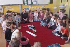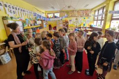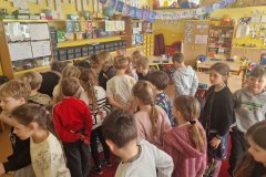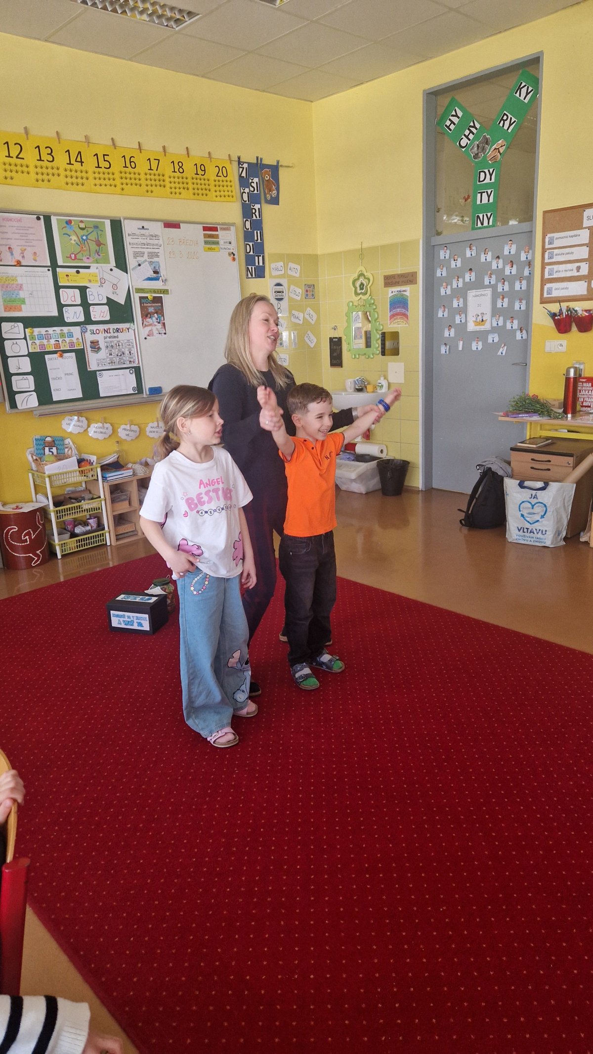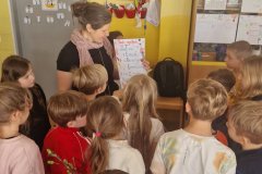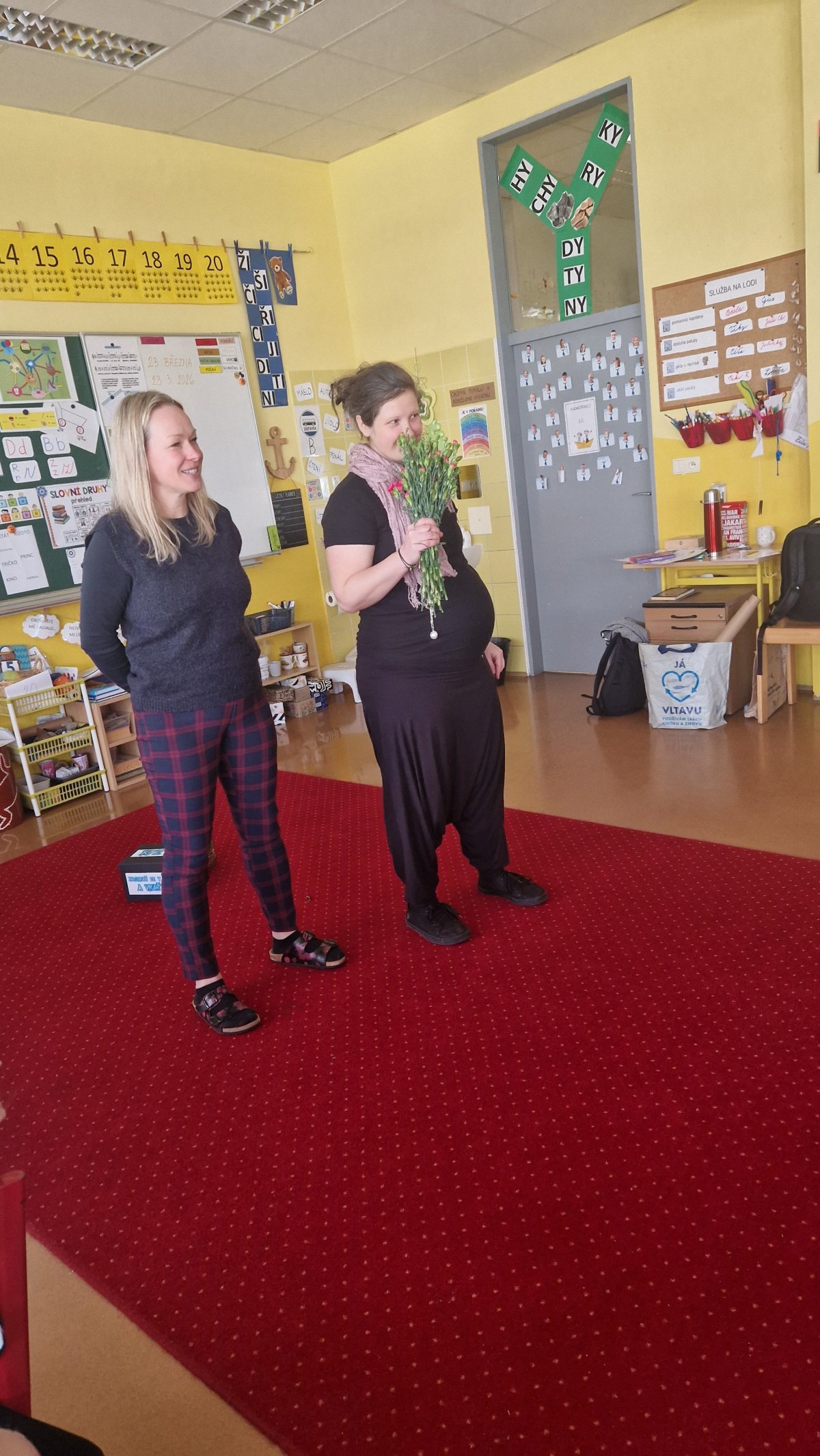 Paní učitelku Terku čekají,jak víme,radostné chvíle. Bude se na ně těšit již z domova a dnes přišla pozdravit děti,protože pravidelně ve výuce se již nebudeme vídat.