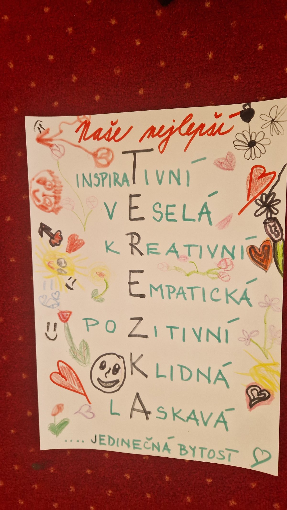 Terka přinesla do třídy mnoho dobrého - radost,poznání,porozumění,laskavost,nadhled,legraci,citlivost,spravedlnost....a taaaaaaak dále...to je celá ona.