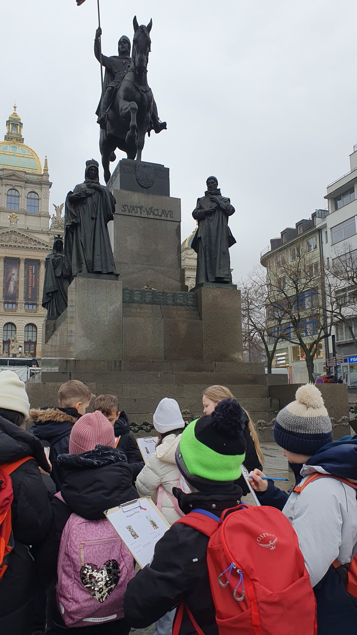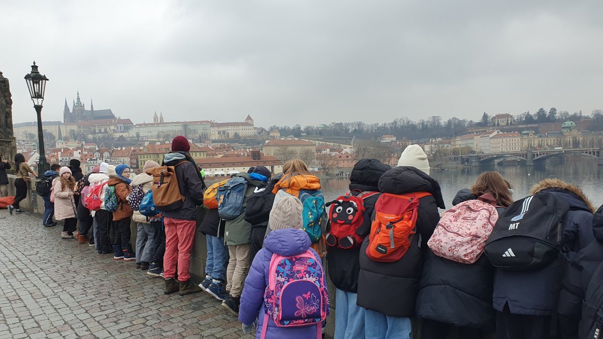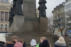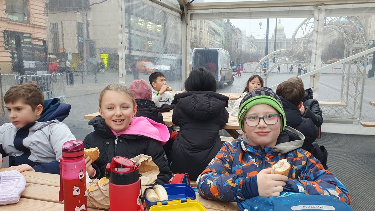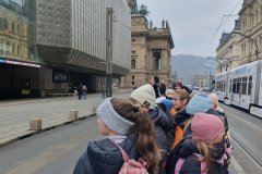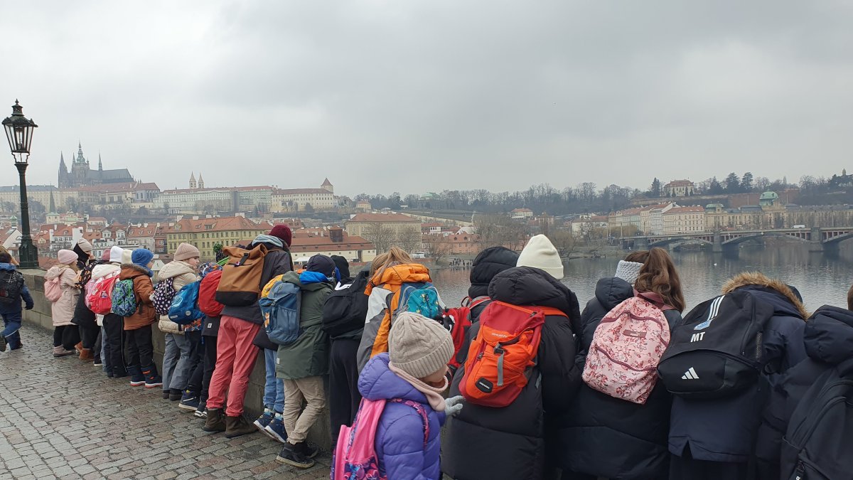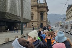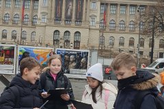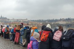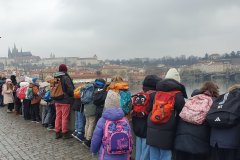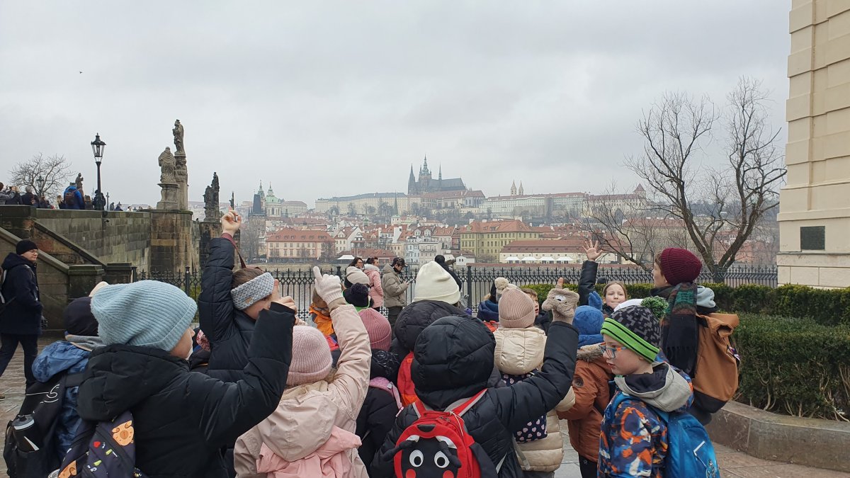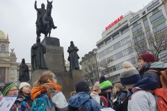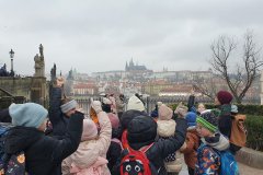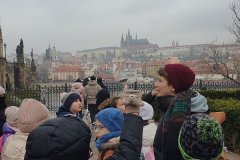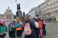 Procházka Prahou s jejími památkami pro nás byla velmi zajímá. Začali jsme sochou svatého Václava a pověstí o jeho rytířích z Blaníku. Málem jsme stihli i odbíjení orloje, o kterém jsme už slyšeli referát. Na druhou stranu bylo náměstí prázdné, a tak jsme mohli ten důmyslný stroj pořádně prozkoumat. Vydali jsme se také na Karlův most a po cestě potkali i pár státních symbolů, nejen českých, kterým už jsme lépe rozuměli. Proč má nějaký orel dvě hlavy a jiný ne? Zeptejte se našich Průzkumníků!