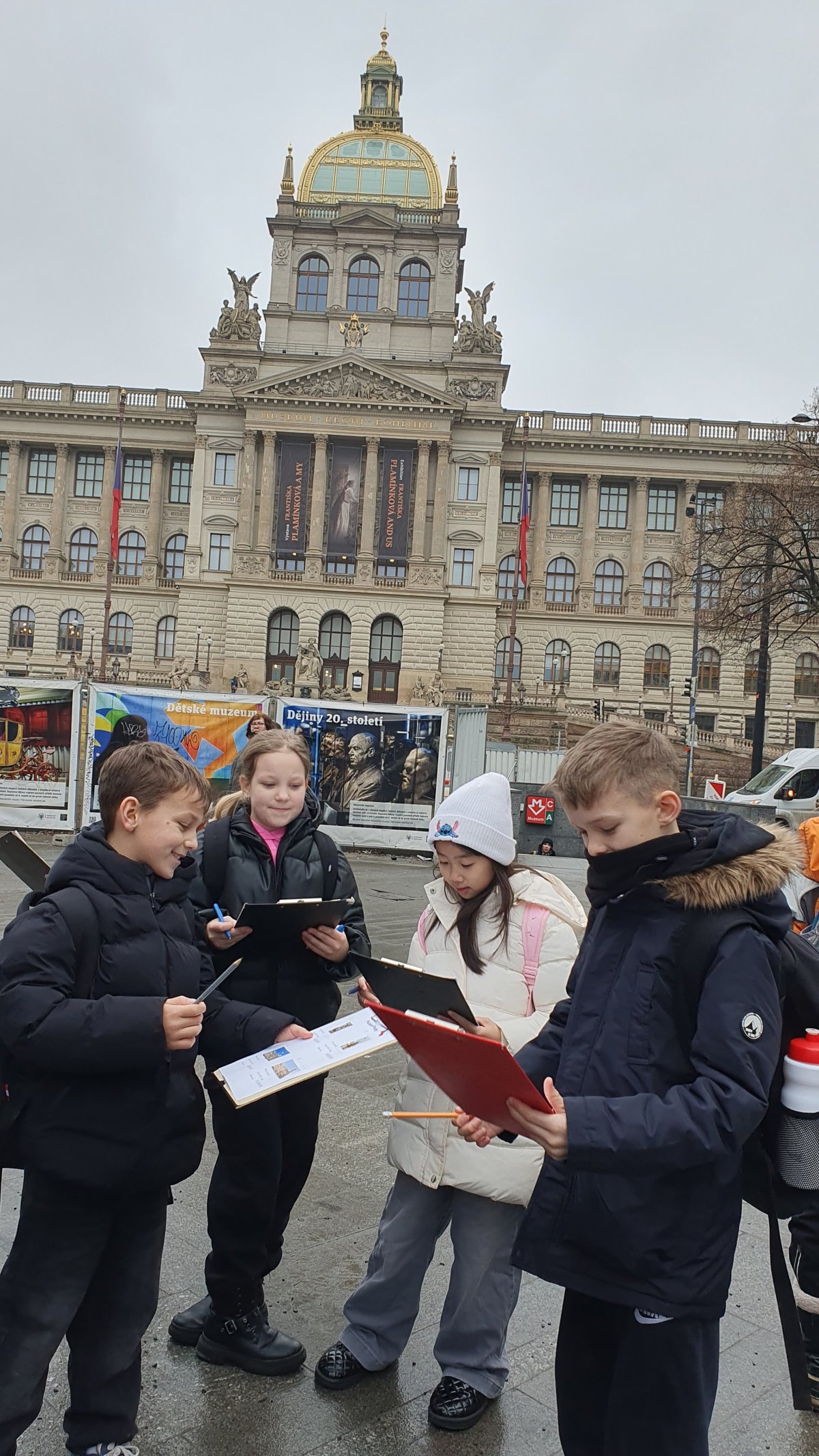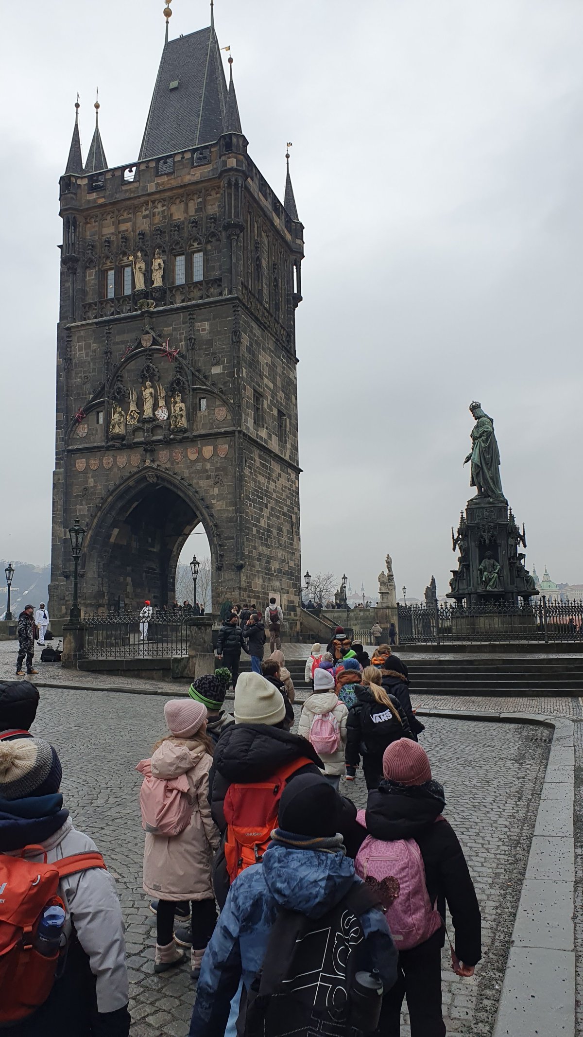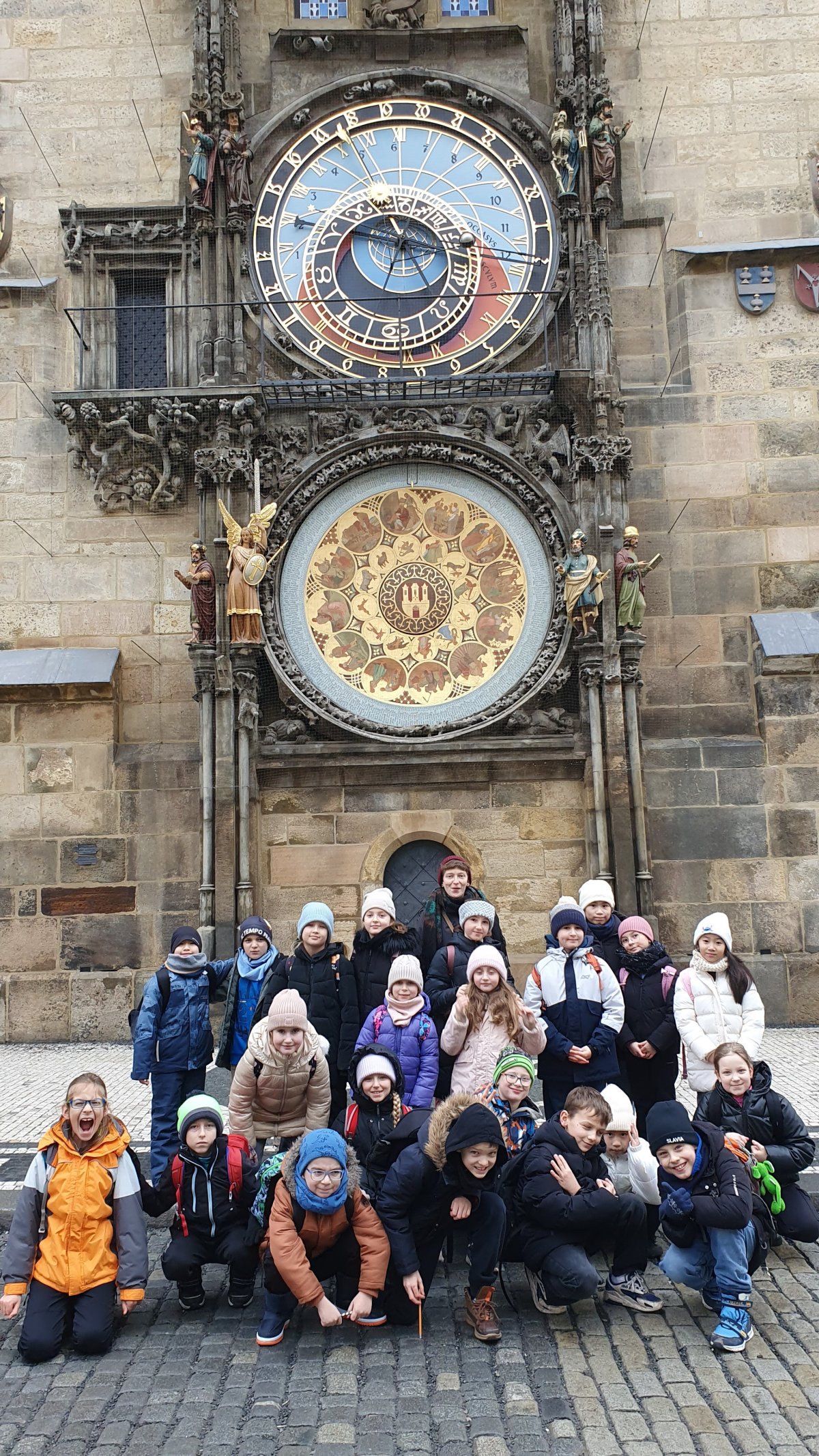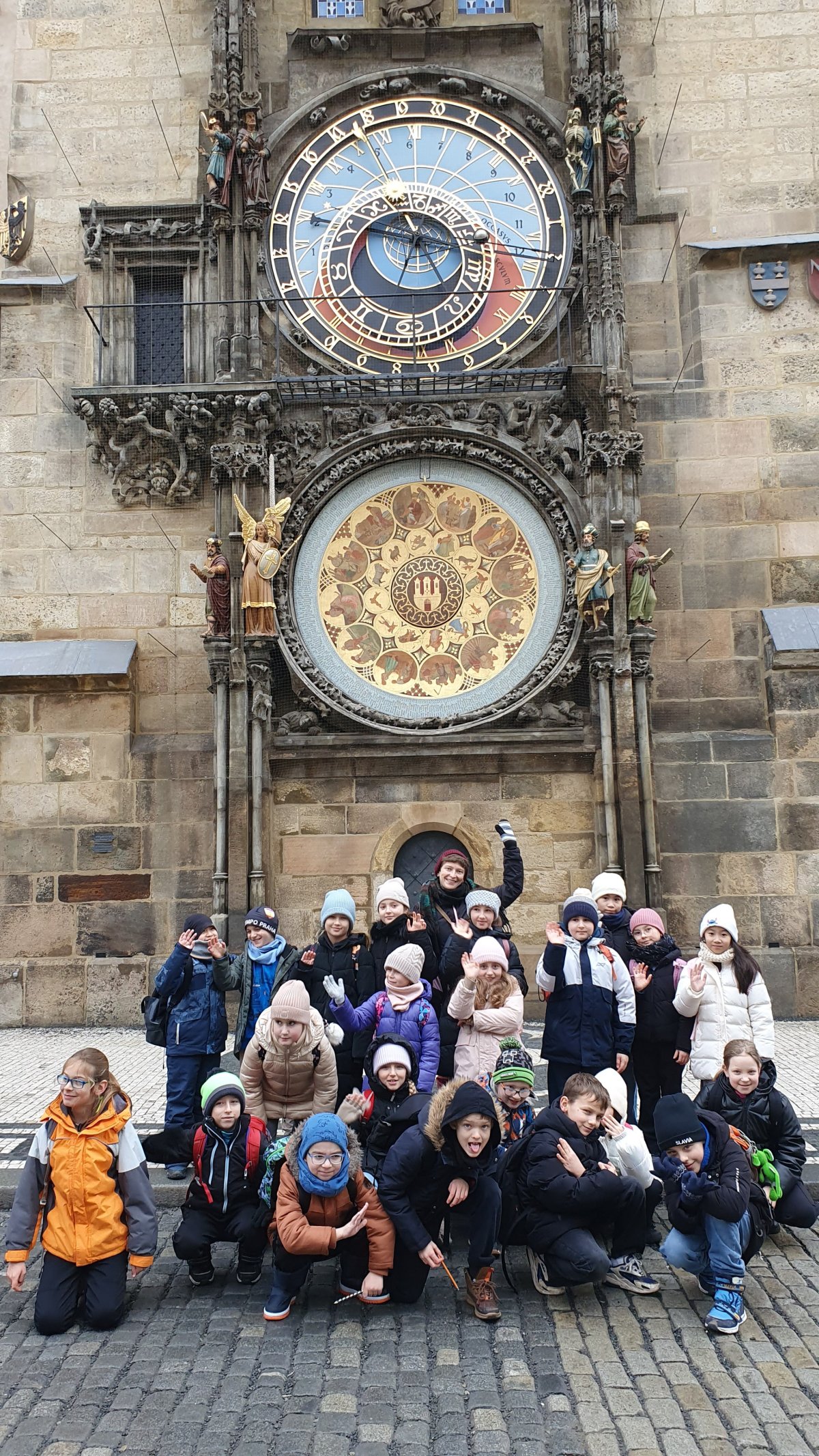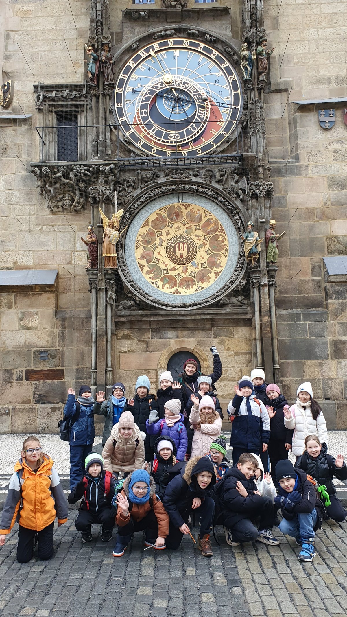 Procházka Prahou s jejími památkami pro nás byla velmi zajímá. Začali jsme sochou svatého Václava a pověstí o jeho rytířích z Blaníku. Málem jsme stihli i odbíjení orloje, o kterém jsme už slyšeli referát. Na druhou stranu bylo náměstí prázdné, a tak jsme mohli ten důmyslný stroj pořádně prozkoumat. Vydali jsme se také na Karlův most a po cestě potkali i pár státních symbolů, nejen českých, kterým už jsme lépe rozuměli. Proč má nějaký orel dvě hlavy a jiný ne? Zeptejte se našich Průzkumníků!