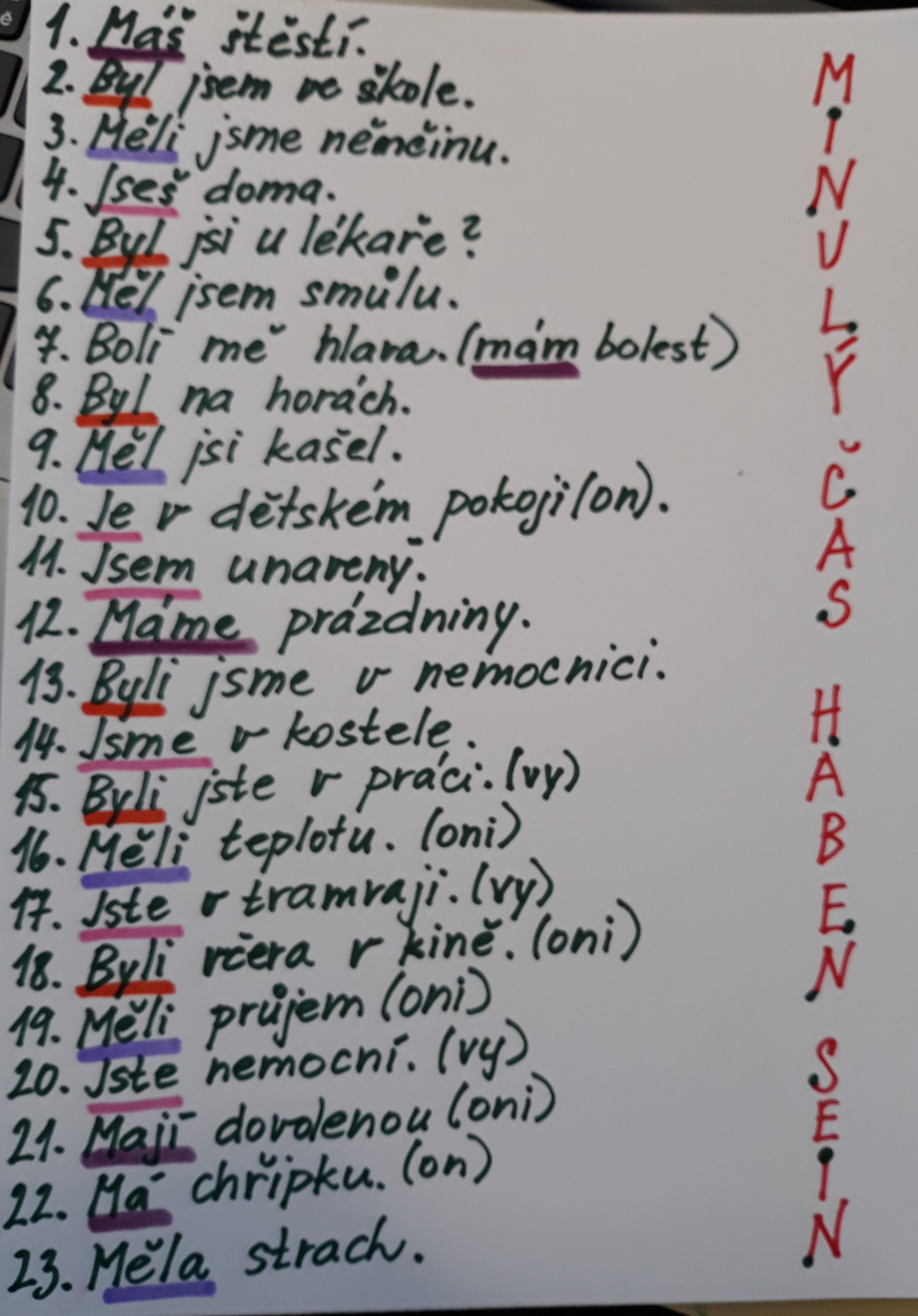 minulý čas haben, sein |