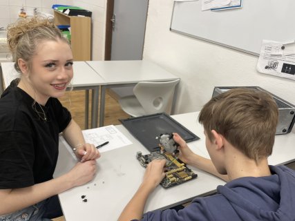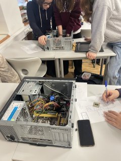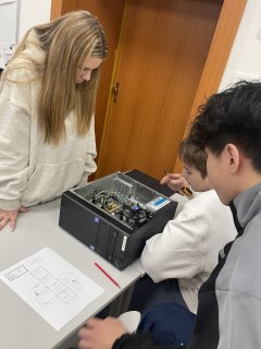 kabinet TV (nad halou) nebo kabinet matematiky (pavilon B, první patro)